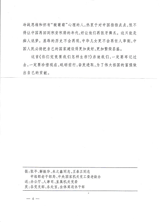莫管他人言堅走自己路 編者按:國家發改委離退休干部局《情況簡報》今年第11期刊載《莫管他人言堅走自己路——由〈你們究竟要我們怎樣生存?〉所想到的》,是一篇洋溢著愛國主義情懷的好詩文,現根據公司領導的指示予以轉載,請各支部作為黨史學習的生動教材,激發全體同志堅定永遠跟著黨走的決心,堅持走中國特色社會主義道路,為全面實現小康社會而努力奮斗。