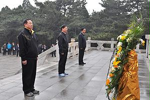 主題活動(dòng)中,全體同志祭掃了盤山革命烈士陵園,向烈士紀(jì)念碑敬獻(xiàn)花籃,深切緬懷在冀東抗日戰(zhàn)爭(zhēng)中犧牲的革命烈士。莊嚴(yán)的烈士紀(jì)念碑前,全體同志寧?kù)o肅立,集體向英烈默哀致敬。郝明金、強(qiáng)衛(wèi)東和中材集團(tuán)黨委書記于世良緩步登上紀(jì)念碑基座,神情莊重地整理花籃上的緞帶,并帶領(lǐng)全體同志瞻仰了紀(jì)念碑。青山有幸埋忠骨,先烈遺風(fēng)育后人。通過祭掃活動(dòng),每位同志重溫了那段血與火的悲壯歷史,永遠(yuǎn)銘記抗日先烈的豐功偉績(jī),激勵(lì)大家繼承先烈遺志,堅(jiān)定理想信念,牢記黨的宗旨,同心協(xié)力,開拓進(jìn)取,以優(yōu)異成績(jī)迎接黨的十八大勝利召開! | ||||||||