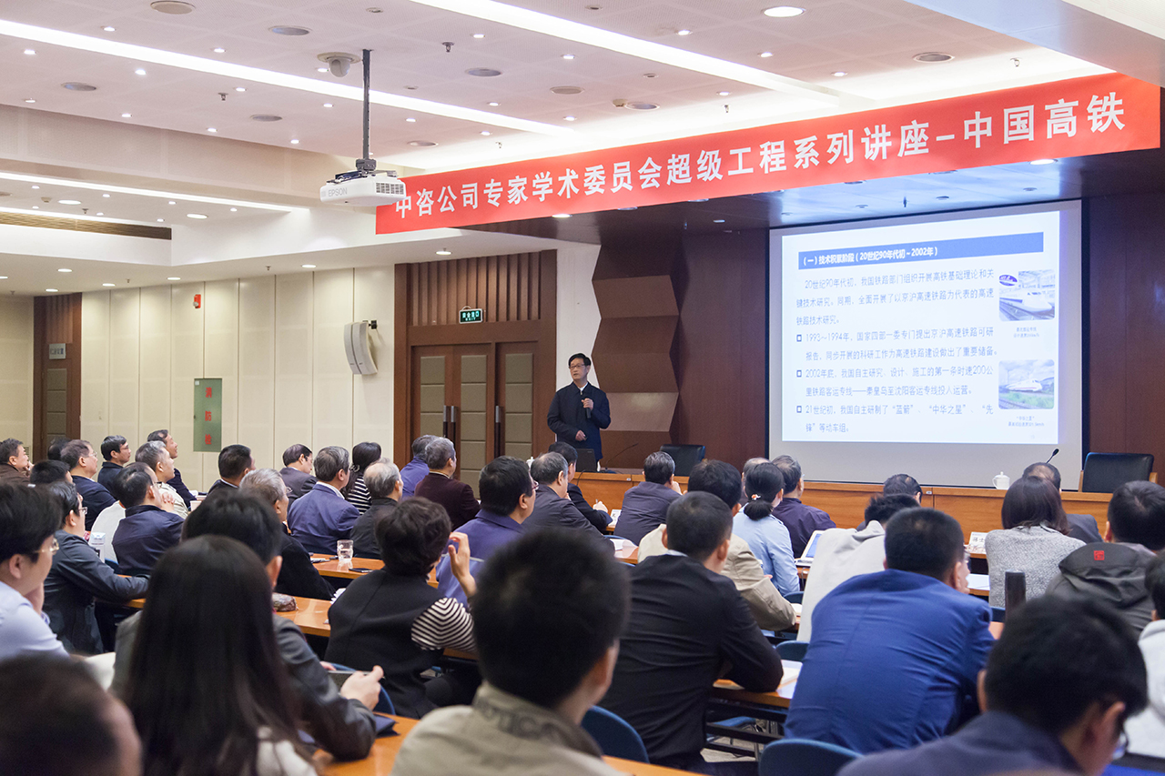 2017年10月16日上午,公司專家學術(shù)委員會舉辦第三期中國超級工程系列講座,邀請原鐵道部副部長盧春房作了題為《中國高速鐵路創(chuàng)新與發(fā)展》的學術(shù)講座,并進行了現(xiàn)場互動交流。 公司領(lǐng)導、專家學術(shù)委員會領(lǐng)導、部分資深專家和交通、高技術(shù)專家組專家、公司各部門和所屬企業(yè)職工200余人參加。