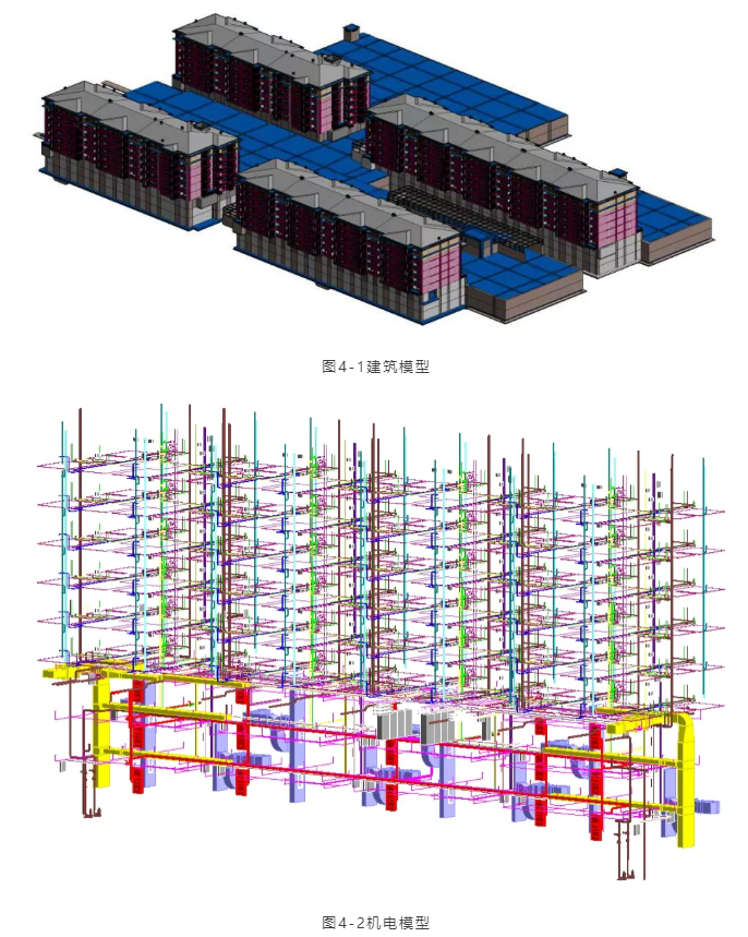 本項目模型工作組結合建模規則基于Revit 2016(Autodesk公司開發的建筑信息模型構建軟件)分專業建立建筑、結構、機電三維模型,具體如圖4-1和4-2,其中機電模型為電氣、給排水、通風等各專業整合后的模型。