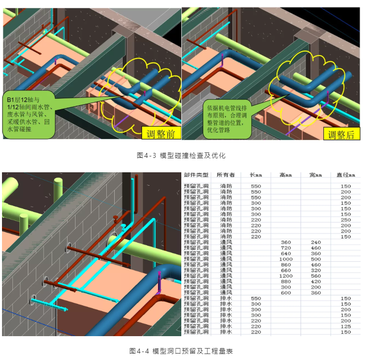本項目利用BIM三維模型,進行碰撞檢查,提前發現施工中的碰撞問題并優化模型,對管線進行綜合調整,減少返工,節約項目成本約23%;利用MagiCAD插件進行洞口的精準預留,提高施工質量。