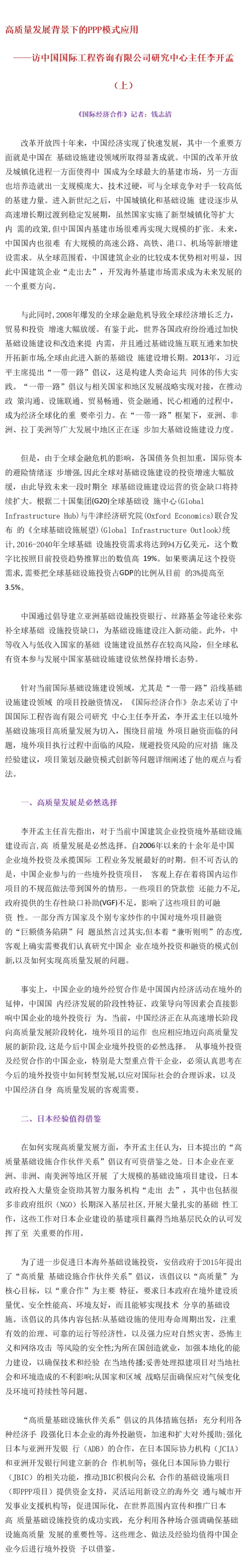 高質量發展背景下的PPP模式應用 ——訪中國國際工程咨詢有限公司研究中心主任李開孟 (上)