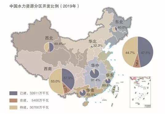 圖1 中國水力資源分區開發比例【3】