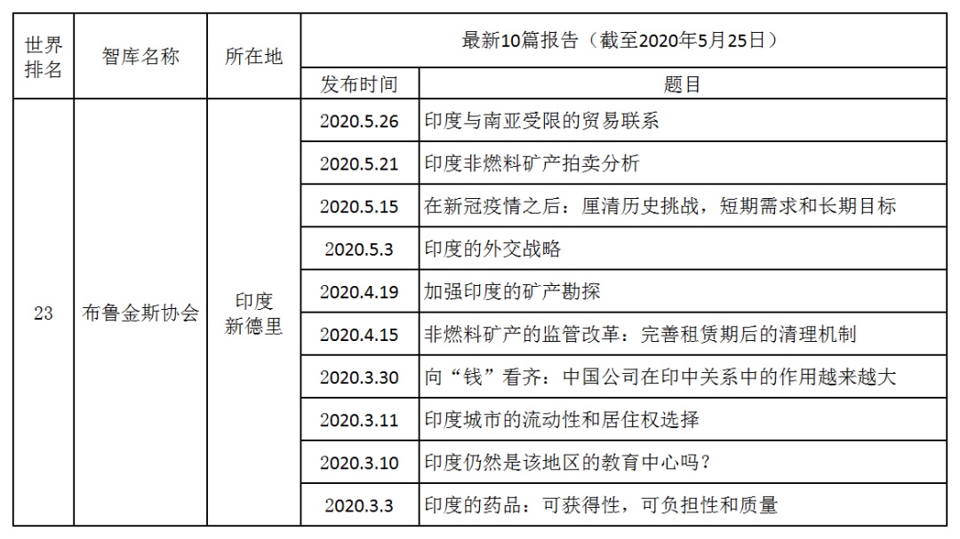 表6 布魯金斯學會(印度分部)2020年3-5月的最新研究成果