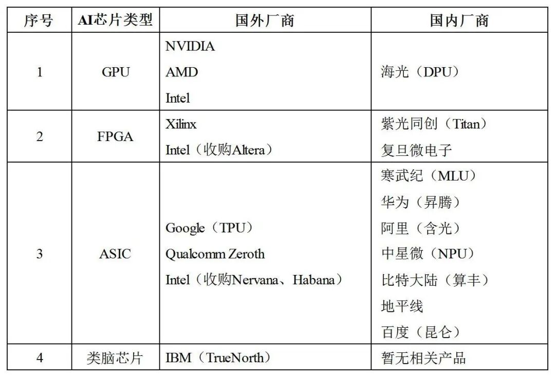 GPU:憑借GPU在當前人工智能市場的主導地位,NVIDIA在AI芯片市場一家獨大。AMD新發(fā)布的GPU產(chǎn)品已經(jīng)實現(xiàn)了對主流AI框架軟件的良好支持,上升勢頭明顯。Intel也正在進行GPU研發(fā)。在國內,目前海光公司正在按進度推進類GPU(DPU)芯片研制,目前已經(jīng)取得階段性進展。
