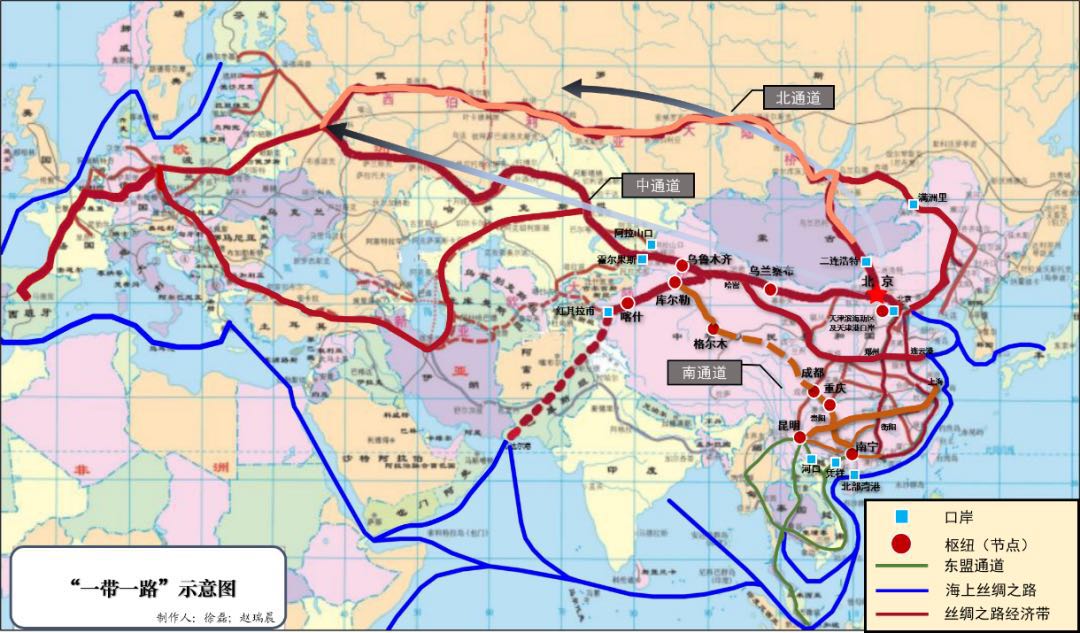 “雙通道”,即以組織開行“京新歐”中歐班列為標(biāo)志,以發(fā)揮新疆主通道作用的中通道為主,進(jìn)入蒙古國、俄羅斯北通道為輔;組織海上集裝箱班輪,經(jīng)由天津港進(jìn)入海上絲綢之路。