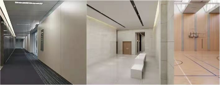 裝配式內隔墻,做法可選擇ALC板或輕鋼龍骨墻體系,意向效果如下圖。以內隔墻200mm厚為例,ALC板構造為75mm厚ALC條板+50mm厚空腔+75mm厚ALC條板。輕鋼龍骨墻體構造為膜飾面或涂料+硅酸鈣板基層+墻面龍骨掛裝系統。