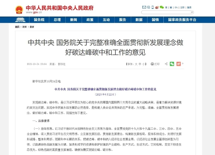 2020年9月,在第七十五屆聯(lián)合國大會一般性辯論上,習(xí)近平總書記代表中國向世界莊嚴(yán)承諾:二氧化碳排放力爭于2030年前達(dá)到峰值,努力爭取2060年前實(shí)現(xiàn)碳中和。 一年后,中共中央、國務(wù)院公布了一份重磅文件——《關(guān)于完整準(zhǔn)確全面貫徹新發(fā)展理念做好碳達(dá)峰碳中和工作的意見》(以下簡稱《意見》)。 這份文件,對習(xí)近平承諾的碳達(dá)峰、碳中和目標(biāo)進(jìn)行了系統(tǒng)謀劃和總體部署。作為未來一個時期內(nèi)指導(dǎo)“雙碳”工作的綱領(lǐng)性文件,這份《意見》相當(dāng)值得研究學(xué)習(xí)。