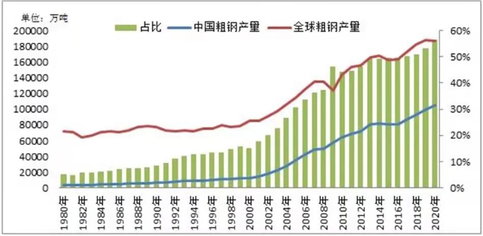 高 質(zhì) 量 發(fā) 展 是 關(guān) 鍵 ——鋼鐵工業(yè)與經(jīng)濟(jì)發(fā)展的幾點(diǎn)思考 陳子琦 一、對(duì)鋼鐵工業(yè)的基本認(rèn)識(shí) 從世界范圍看,鋼鐵行業(yè)是僅次于石油天然氣的第二大行業(yè),全球鋼鐵行業(yè)產(chǎn)值約一萬(wàn)多億美元。中國(guó)擁有世界上唯一門類齊全、結(jié)構(gòu)完整的鋼鐵工業(yè)體系,擁有采礦、選礦、燒結(jié)(球團(tuán))、焦化、煉鐵、煉鋼、軋鋼、金屬制品、炭素、鐵合金輔料等全部流程,以及勘探、設(shè)計(jì)、施工、科研等機(jī)構(gòu)。鋼鐵工業(yè)是國(guó)民經(jīng)濟(jì)重要基礎(chǔ)產(chǎn)業(yè),為經(jīng)濟(jì)社會(huì)發(fā)展和國(guó)防建設(shè)做出了重要貢獻(xiàn)。同時(shí),也是工業(yè)門類中的大行業(yè),具有資源和資本密集、產(chǎn)業(yè)關(guān)聯(lián)度高、經(jīng)濟(jì)社會(huì)影響大等特點(diǎn)。2010年前,我國(guó)鋼鐵工業(yè)增加值約占全國(guó)GDP的4%,產(chǎn)值約占全國(guó)工業(yè)的9%,在全國(guó)工業(yè)排序中僅次于交通運(yùn)輸設(shè)備制造業(yè)和化學(xué)工業(yè),近年來(lái)排序略有下降,列第四位。國(guó)家統(tǒng)計(jì)局?jǐn)?shù)據(jù)顯示,2020年我國(guó)粗鋼產(chǎn)量10.65億噸,這在人類歷史上是空前的,占世界粗鋼產(chǎn)量的56.7%。 從鋼鐵工業(yè)基本面看,我國(guó)是世界鋼鐵大國(guó),距鋼鐵強(qiáng)國(guó)并不遙遠(yuǎn),是全國(guó)工業(yè)中少數(shù)接近國(guó)際先進(jìn)水平的行業(yè)。我國(guó)有10億噸級(jí)的粗鋼消費(fèi)量,鋼鐵工業(yè)有大量先進(jìn)的鋼鐵生產(chǎn)裝備,重點(diǎn)企業(yè)裝備達(dá)到國(guó)際先進(jìn)水平。沿海布局取得明顯進(jìn)展,擁有世界上30多年來(lái)新建的沿海千萬(wàn)噸級(jí)鋼鐵大廠。鋼鐵工業(yè)技術(shù)進(jìn)步持續(xù)推進(jìn),技術(shù)經(jīng)濟(jì)指標(biāo)得到改善,產(chǎn)品檔次質(zhì)量逐步提高,支撐了我國(guó)經(jīng)濟(jì)社會(huì)發(fā)展,部分鋼鐵產(chǎn)品具有較強(qiáng)國(guó)際競(jìng)爭(zhēng)力。此外,在節(jié)能減排、環(huán)境保護(hù)等綠色發(fā)展等方面也取得較大進(jìn)展。 二、關(guān)于鋼鐵工業(yè)與經(jīng)濟(jì)發(fā)展的幾點(diǎn)思考 (一)鋼鐵工業(yè)滿足了國(guó)民經(jīng)濟(jì)和國(guó)防建設(shè)需要 2020年,我國(guó)消費(fèi)鋼材高達(dá)10億噸級(jí)(折粗鋼),約占全世界需求量的56%,其中絕大部分為自主供應(yīng),國(guó)內(nèi)鋼材自給率達(dá)105.7%,國(guó)產(chǎn)鋼材市場(chǎng)占有率達(dá)98.6%,進(jìn)口鋼材市場(chǎng)占有率不足2%。同時(shí),國(guó)產(chǎn)鋼材品種質(zhì)量明顯改善,有力支持了高速鐵路、南水北調(diào)、西氣東輸、奧運(yùn)工程等國(guó)家重大工程和重點(diǎn)項(xiàng)目,基本滿足了建筑業(yè)、制造業(yè)、新興產(chǎn)業(yè)發(fā)展以及國(guó)防建設(shè)需要。應(yīng)該看到,我國(guó)這么大的鋼材需求量主要依靠進(jìn)口是絕對(duì)不可能的,沒(méi)有哪個(gè)國(guó)家能夠供應(yīng)。 圖1 1980-2020年中國(guó)與世界粗鋼產(chǎn)量及其占比 (二)紅色是中國(guó)鋼鐵發(fā)展的主旋律 鋼鐵,兵之利器,國(guó)之脊梁。鋼鐵強(qiáng),則國(guó)強(qiáng)。鋼鐵大國(guó)和強(qiáng)國(guó),是中國(guó)共產(chǎn)黨的領(lǐng)袖們從戰(zhàn)火紛飛的硝煙中一路走來(lái)的夢(mèng)想。共和國(guó)誕生之初,重中之重是恢復(fù)鞍鋼,支撐脆弱的國(guó)民經(jīng)濟(jì)發(fā)展,支持抗美援朝戰(zhàn)爭(zhēng)。上世紀(jì)50年代末,一場(chǎng)轟轟烈烈的以“超英趕美”為目標(biāo)的“大煉鋼鐵運(yùn)動(dòng)”,在當(dāng)今看來(lái),雖激進(jìn)且不甚科學(xué),但卻從另一個(gè)方面印證了舉國(guó)上下發(fā)展鋼鐵工業(yè)、增強(qiáng)綜合國(guó)力的堅(jiān)強(qiáng)決心和曲折不易。改革開放以來(lái),在黨的領(lǐng)導(dǎo)下,鋼鐵工業(yè)發(fā)奮圖強(qiáng),通過(guò)寶鋼建設(shè)促進(jìn)了鋼鐵技術(shù)長(zhǎng)足進(jìn)步,一大批現(xiàn)代化的高爐、轉(zhuǎn)爐、連軋機(jī)等先進(jìn)裝備如雨后春筍般涌現(xiàn),鋼鐵工業(yè)得到了飛速發(fā)展,成為世界第一產(chǎn)鋼大國(guó),正在邁向世界鋼鐵強(qiáng)國(guó)。鋼鐵工業(yè)成為支撐國(guó)民經(jīng)濟(jì)發(fā)展和制造大國(guó)地位的重要基礎(chǔ)。 紅色是鋼鐵工業(yè)發(fā)展的主旋律,火紅的年代見證了鋼鐵的報(bào)國(guó)初心使命。長(zhǎng)期以來(lái),鋼鐵工業(yè)受到黨和國(guó)家領(lǐng)導(dǎo)人的高度關(guān)注。毛主席提出了“鞍鋼憲法”“鋼鐵元帥”“以鋼為綱”。鄧小平同志提出了“歷史將證明,建設(shè)寶鋼是正確的”,今天寶鋼已成為我國(guó)乃至世界鋼鐵龍頭企業(yè),驗(yàn)證了小平同志預(yù)言的正確性。習(xí)近平總書記多次視察馬鋼、太鋼等鋼鐵企業(yè)。鋼鐵工業(yè)產(chǎn)生了無(wú)數(shù)英模,孟泰、雷鋒、馬萬(wàn)水、郭明義是杰出代表。從紅色鋼鐵企業(yè)看,前身是八路軍太行山兵工廠的故縣鐵廠、上世紀(jì)50年代恢復(fù)建設(shè)的鞍鋼、50年代后期建設(shè)的包鋼、70年代建設(shè)的攀鋼、80年代建設(shè)的寶鋼,這些鋼鐵企業(yè)的發(fā)展壯大,與黨的建設(shè)、共和國(guó)的建設(shè)密不可