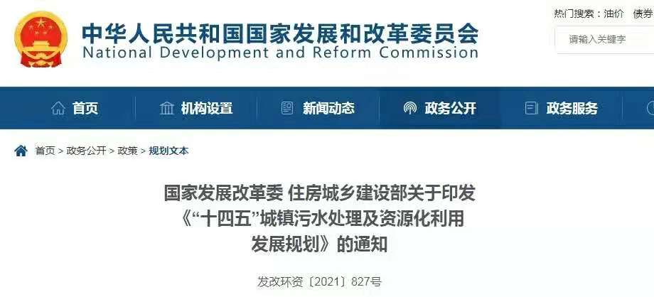 ——《“十四五”城鎮污水處理及資源化利用發展規劃》政策解讀