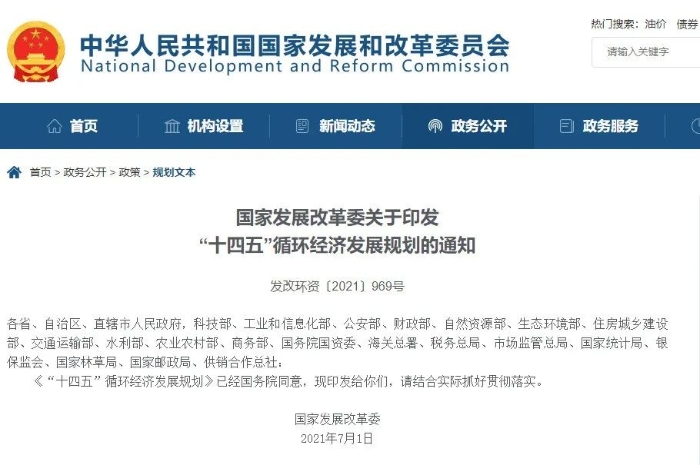 保障資源安全 助力雙碳目標(biāo) ——《“十四五”循環(huán)經(jīng)濟發(fā)展規(guī)劃》解讀 近日,經(jīng)國務(wù)院同意,國家發(fā)展改革委印發(fā)了《“十四五”循環(huán)經(jīng)濟發(fā)展規(guī)劃》(發(fā)改環(huán)資﹝2021﹞969號,以下簡稱《規(guī)劃》),全面部署了今后一段時期我國循環(huán)經(jīng)濟發(fā)展的總體思路、主要任務(wù)、重點工程行動和保障措施,指明了“十四五”循環(huán)經(jīng)濟發(fā)展路徑,對于推進循環(huán)經(jīng)濟發(fā)展,構(gòu)建綠色低碳循環(huán)的經(jīng)濟體系,助力實現(xiàn)碳達峰、碳中和目標(biāo)意義重大。