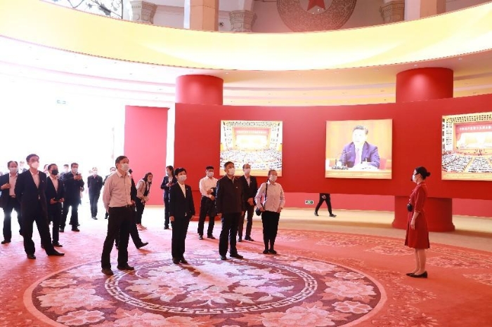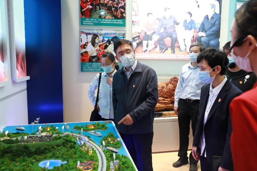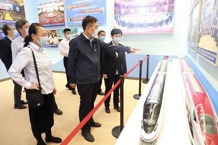 在參觀地方展區福建、廣東、海南、云南、青海、新疆、西藏等單元時,茍護生和公司黨員干部不時駐足在FAST天眼、白鶴灘水電站、中老鐵路、三江源、雄安站、藏中聯網工程等模型、沙盤和圖片前,凝神深思,交流體會。回望過去,中咨公司聚焦黨中央、國務院重大關切,為國家重大戰略、重大規劃、重大工程的科學決策提供高質量咨詢服務,加強高端智庫建設,與咨詢業務形成共建互促新格局。公司參與粵港澳大灣區、海南自貿區區域發展戰略的研究制定;總結推廣福建“三明實踐”發展經驗,助力革命老區騰飛;服務新時代黨的治疆方略,為新疆“十四五”高質量發展論證儲備一批重大項目;參與雄安新區若干規劃咨詢服務,承擔雄安站咨詢論證以及雄安市民服務中心工程監理服務;踐行“綠水青山就是金山銀山”理念,編制我國第一部國家公園規劃《三江源國家公園總體規劃》;評估論證南水北調、天眼、藏中聯網工程、白鶴灘水電站、“華龍一號”等一批重大工程,當好國家投資建設的科學智囊;建言獻策,推動中老鐵路從構想變成現實,參與中老鐵路評估論證及監理服務……中咨人努力拼搏、銳意進取的奮斗場景歷歷在目。大家對中咨公司以習近平新時代中國特色社會主義思想為遵循,以服務國家戰略為己任,將黨中央、國務院決策部署不折不扣落實到咨詢服務工作中,在“非凡十年”為黨和國家事業發展貢獻智慧和力量感到振奮和鼓舞。