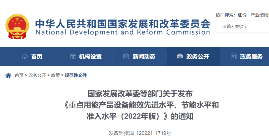 重點(diǎn)用能產(chǎn)品設(shè)備廣泛應(yīng)用于生產(chǎn)和生活的方方面面,是全社會(huì)重點(diǎn)行業(yè)、重點(diǎn)領(lǐng)域節(jié)能降碳工作的重要抓手。近日,國(guó)家發(fā)展改革委等部門(mén)聯(lián)合印發(fā)了《關(guān)于發(fā)布〈重點(diǎn)用能產(chǎn)品設(shè)備能效先進(jìn)水平、節(jié)能水平和準(zhǔn)入水平(2022年版)〉的通知》(發(fā)改環(huán)資規(guī)〔2022〕1719號(hào),以下簡(jiǎn)稱(chēng)《通知》),聚焦重點(diǎn)用能產(chǎn)品設(shè)備,明確能效先進(jìn)水平、節(jié)能水平和準(zhǔn)入水平,提出了加快淘汰落后設(shè)備,鼓勵(lì)擴(kuò)大高能效產(chǎn)品設(shè)備消費(fèi),推動(dòng)相關(guān)產(chǎn)業(yè)提質(zhì)升級(jí)的措施安排。《通知》的印發(fā)對(duì)強(qiáng)化重點(diǎn)用能產(chǎn)品設(shè)備能效管理,深挖重點(diǎn)用能產(chǎn)品設(shè)備節(jié)能降碳潛力將發(fā)揮重要作用,對(duì)于實(shí)現(xiàn)碳達(dá)峰碳中和具有重要意義。