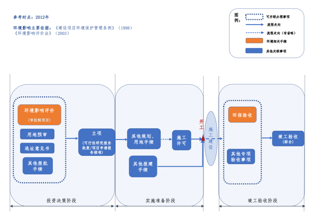 編者按 新中國成立以來,我國基礎設施投資建設取得了舉世矚目的成就,是國家經濟社會發展的重要支撐,為人民生活水平的提高做出了巨大貢獻。改革開放以來,市場開始發揮配置資源的基礎性作用,為我國基礎設施的發展煥發了新的活力。據統計,我國基礎設施資產總規模在1990年排在全世界約第15位,2000年上升到第7位,2010年躍升為第3位,至2018年已居世界首位。 黨的二十大報告在回顧過去五年的工作和新時代十年的偉大變革中,充分肯定了基礎設施在經濟社會中發揮的重要作用,報告指出,我國“建成世界最大的高速鐵路網、高速公路網,機場港口、水利、能源、信息等基礎設施建設取得重大成就”。我國基礎設施多年來大規模的投資建設和存量資產的高速積累,是黨中央、國務院在建立社會主義市場經濟體制背景下,關于投融資體制改革部署的重要成果。 項目前期工作手續的合規性要求,是基礎設施能夠發揮其應有價值的重要前提,也是投融資體制改革關注的重點內容之一。伴隨著政府職能轉變、深化“放管服”改革和擴大有效投資等重大決策的關鍵部署,我國工程建設項目審批制度不斷優化和改革,基礎設施項目投資前期決策管理經歷了復雜的演變進程,其合規性標準也在與時俱進、不斷完善。當前我國已進入基礎設施存量時代,存量資產項目前期工作手續的合規性是重要的盤活條件之一,部分合規性問題已成為新時代社會廣泛關注的焦點。本項專題研究立足投融資體制和項目審批制度變革的歷史背景,嘗試厘清基礎設施項目在立項、土地、規劃、環境、建設施工等方面主要前期工作的歷史變革脈絡,梳理不同管理事項之間的邏輯關聯,從這一視角提供基礎設施項目前期工作手續的合規性認識。本公眾號將研究報告的部分成果以系列文章的形式陸續刊發,研究報告第一部分為背景與立項篇,第二部分為土地與規劃篇,第三部分為建設施工篇,本文是研究報告的第四部分(環境篇),供業界同仁參考。 基礎設施項目前期工作手續合規性研究(Ⅳ) 環境篇 張雪飛 伍迪 摘要:綠水青山就是金山銀山,基礎設施項目的建設可能會對環境產生影響,因此需要格外重視項目在環境保護方面的有關前期工作,具有代表性的手續事項主要包括環境影響評價、排污許可、環保專項驗收等。建設項目環境影響評價,是對項目實施后可能造成的環境影響進行分析、預測和評估,提出預防或者減輕不良環境影響的對策和措施,進行跟蹤監測的方法與制度。排污許可,是環境保護主管部門依排污單位的申請和承諾,通過發放排污許可證法律文書形式,依法依規規范和限制排污單位排污行為并明確環境管理要求,依據排污許可證對排污單位實施監管執法的環境管理制度。如果說環境影響評價制度是建設項目的環境準入門檻,那么排污許可制度是企事業單位生產運營期排污的法律依據。本文聚焦基礎設施項目環境方面的手續,對手續主要內容和制度演進進行系統梳理,供業界參考。 關鍵詞:基礎設施;合規性;環境影響評價;排污許可;政策演進 當前我國基礎設施項目在環境方面前期工作主要包括環境影響評價和排污許可等相關手續,此外,在工程項目的竣工驗收階段,還包括環保方面的專項驗收等。 ——開展建設項目環境影響評價,自上世紀末《建設項目環境保護管理條例》開始施行以來就一直都是基礎設施項目在環境方面前期手續的核心工作。環境影響評價是對規劃和建設項目實施后可能造成的環境影響進行的分析、預測和評估,并提出預防或者減輕不良環境影響的對策和措施,進行跟蹤監測。實行建設項目環境影響評價制度,最主要目的是為了防止建設項目產生新的污染、造成生態環境的破壞。 ——排污許可制度,從2016年11月開始施行,形成了與環境影響評價制度的有機銜接。如果說環境影響評價制度是建設項目的環境準入門檻,那么排污許可制度是企事業單位生產運營期排污的法律依據。為實現從污染預防到污染治理和排放控制的全過程監管,新建項目必須在發生實際排污行為之前申領排污許可證,環境影響評價文件及批復中與污染物排放相關的主要內容應當納入排污許可證,其排污許可證執行情況應作為環境影響后評價的重要依據。 ——環保驗收是基礎設施項目竣工后,建設單位按照國務院環境保護行政主管部門規定的標準和程序,對配套建設的環境保護設施進行的專項驗收。 一、環境影響評價 (一)內涵與適用范圍 分類管理。根據建設項目對環境的影響程度,我國對建設項目的環境影響評價實行分類管理。建設單位應當按照不同標準組織編制不同形式的內容:可能造成重大環境影響的,應當編制環境影響報告書,對產生的環境影響進行全面評價;可能造成輕度環境影響的,應當編制環境影響報告表,對產生的環境影響進行分析或者專項評價;對環境影響很小、不需要進行環境影響評價的,應當填報環境影響登記表。建設項目的環境影響評價分類管理名錄,由國務院生態環境主管部門(原國務院環境保護行政主管部門)制訂并公布。最新修訂且現行有效的《建設項目環境保護分類管理名錄》由2020年11月30日生態環境部令第16號公布,自2021年1月1日起施行。 最新評價內容。環境影響評價主要以《中華人民共和國環境影響評價法》(以下簡稱《環境影響評價法》)和《建設項目環境