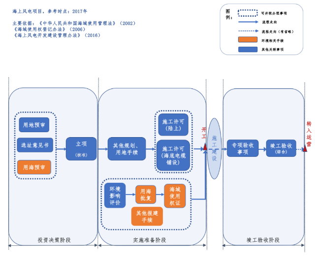 圖1  海上風電項目專項手續要點及與其他事項的關聯(2017年)