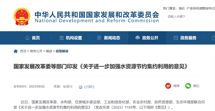 落實(shí)全面節(jié)約 堅(jiān)持四水四定 進(jìn)一步加強(qiáng)水資源節(jié)約集約利用 ——《關(guān)于進(jìn)一步加強(qiáng)水資源節(jié)約集約利用的意見》專家解讀 加強(qiáng)水資源節(jié)約集約利用,推動(dòng)全過程、全領(lǐng)域、全社會(huì)節(jié)水,是深入貫徹習(xí)近平生態(tài)文明思想、實(shí)施全面節(jié)約戰(zhàn)略的重要舉措,是緩解我國水資源供需矛盾、保障水安全的必然選擇。近日,國家發(fā)展改革委、水利部、住房城鄉(xiāng)建設(shè)部、工業(yè)和信息化部、農(nóng)業(yè)農(nóng)村部、自然資源部、生態(tài)環(huán)境部等部門聯(lián)合印發(fā)《關(guān)于進(jìn)一步加強(qiáng)水資源節(jié)約集約利用的意見》(發(fā)改環(huán)資〔2023〕1193號,以下簡稱《意見》),強(qiáng)化“四水四定”,對推進(jìn)水資源總量管理、科學(xué)配置、全面節(jié)約、循環(huán)利用,深入實(shí)施國家節(jié)水行動(dòng)作出了新的部署,凸顯以下四大亮點(diǎn)。 01. 強(qiáng)調(diào)配取用排節(jié)水,強(qiáng)化全過程水資源節(jié)約 《意見》提出,在配置階段,加強(qiáng)用水總量和強(qiáng)度雙控,加快開展跨行政區(qū)江河流域水量分配,堅(jiān)持先節(jié)水后調(diào)水,把節(jié)水作為受水區(qū)的根本出路;在取水階段,嚴(yán)格建設(shè)項(xiàng)目水資源論證,依法審批取水許可,整治違法取水問題;在用水階段,健全用水定額體系,做好用水定額動(dòng)態(tài)評估和更新,落實(shí)計(jì)劃用水,提高各領(lǐng)域用水效率;在回用階段,推行非常規(guī)水源納入水資源統(tǒng)一配置,缺水城市積極拓展再生水利用領(lǐng)域和規(guī)模,具備條件的地方充分利用海水、礦井水、雨水等非常規(guī)水源。水資源節(jié)約集約利用工作貫穿全生命周期,涵蓋了資源配置階段的科學(xué)性、利用過程的先進(jìn)性以及回用環(huán)節(jié)的可行性,旨在推行全過程管理和全鏈條節(jié)約。 02. 創(chuàng)新性提出生態(tài)景觀節(jié)水,強(qiáng)化全領(lǐng)域水資源節(jié)約 近年來,我國用水結(jié)構(gòu)不斷優(yōu)化,生態(tài)用水在用水總量中占比逐年增加,目前已超過居民生活用水的一半,因此生態(tài)景觀節(jié)水的重要性不可忽視。此外,隨著城市建設(shè)步伐的加快,城市景觀綠化面積迅速擴(kuò)大,不恰當(dāng)?shù)木G化植被和人工水景消耗了大量的水資源?!兑庖姟穼⑸鷳B(tài)景觀節(jié)水與農(nóng)業(yè)農(nóng)村、工業(yè)、城鎮(zhèn)三大傳統(tǒng)用水領(lǐng)域并列,補(bǔ)上了全領(lǐng)域節(jié)水的最后一塊拼圖,提出要堅(jiān)持以水定綠,堅(jiān)持山水林田湖草沙一體化保護(hù)和系統(tǒng)治理,統(tǒng)籌推進(jìn)水源涵養(yǎng)、國土綠化、防沙治沙、濕地修復(fù)、水土保持;嚴(yán)控景觀用水,嚴(yán)禁違背自然規(guī)律挖湖造景,限制盲目擴(kuò)大景觀和娛樂場地的水域面積,黃河流域嚴(yán)控新建親水公園。 03. 關(guān)注節(jié)水產(chǎn)業(yè),明確節(jié)水增效雙提升新抓手 發(fā)展節(jié)水產(chǎn)業(yè)經(jīng)濟(jì)新業(yè)態(tài),協(xié)調(diào)推進(jìn)“產(chǎn)業(yè)節(jié)水”與“節(jié)水產(chǎn)業(yè)”協(xié)同發(fā)展,是推動(dòng)水資源高效利用與產(chǎn)業(yè)質(zhì)量效益共同提升的有力抓手。我國一直把發(fā)展節(jié)水產(chǎn)業(yè)放在重要位置,《國家節(jié)水行動(dòng)方案》中多次強(qiáng)調(diào)加快成果轉(zhuǎn)化和產(chǎn)業(yè)培育,《意見》專門成章并提出細(xì)化措施支持節(jié)水產(chǎn)業(yè)發(fā)展壯大,如加強(qiáng)技術(shù)研發(fā)應(yīng)用,支持舉辦節(jié)水創(chuàng)新發(fā)展大會(huì)及高新技術(shù)成果展,推進(jìn)技術(shù)產(chǎn)業(yè)化;推廣節(jié)水產(chǎn)品,實(shí)施水效標(biāo)識,推行綠色產(chǎn)品政府采購,依法打擊水效虛標(biāo),推進(jìn)節(jié)水信息化管理;推動(dòng)節(jié)水服務(wù)產(chǎn)業(yè)發(fā)展,積極開展用水權(quán)交易,落實(shí)交易收益分配制度,在公共機(jī)構(gòu)、高耗水行業(yè)、供水管網(wǎng)漏損控制等領(lǐng)域推廣合同節(jié)水管理。 04. 突出問題導(dǎo)向,聚焦短板弱項(xiàng)破解難點(diǎn)堵點(diǎn) 《意見》秉持問題導(dǎo)向,聚焦亟待解決的難點(diǎn)堵點(diǎn),緊盯細(xì)分領(lǐng)域、重點(diǎn)區(qū)域和短板弱項(xiàng),有針對性地提出了應(yīng)對舉措。如我國在農(nóng)業(yè)節(jié)水方面已有高效節(jié)水灌溉技術(shù)、農(nóng)田水利工程等有力措施,但農(nóng)業(yè)用水計(jì)量與監(jiān)測設(shè)施建設(shè)仍是薄弱環(huán)節(jié),《意見》提出,5萬畝以上大中型灌區(qū)渠首取水口要實(shí)現(xiàn)在線計(jì)量,大中型灌區(qū)應(yīng)在產(chǎn)權(quán)分界點(diǎn)安裝計(jì)量設(shè)施,高標(biāo)準(zhǔn)農(nóng)田和高效節(jié)水灌溉項(xiàng)目要配套實(shí)用易行的計(jì)量設(shè)施,進(jìn)一步細(xì)化計(jì)量單元。又如,公共機(jī)構(gòu)是用水大戶,也是節(jié)水示范引領(lǐng)的重要載體,近來會(huì)議場所“半瓶水”浪費(fèi)現(xiàn)象備受關(guān)注,《意見》對此提出,公共機(jī)構(gòu)率先垂范,提高公共機(jī)構(gòu)用水計(jì)量信息化水平,在機(jī)關(guān)、學(xué)校、醫(yī)院