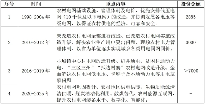 我國于2016年起實施新一輪農村電網改造升級,此階段重點為“三大專項與兩大攻堅”,著重對小城鎮中心村農村電網改造升級、農村機井通電、貧困村通動力電、“三區三州”農村電網改造升級和“抵邊村寨”農村電網進行改造升級。新一輪農村電網改造至2019年結束,累計投資超7000億元,覆蓋了30個省區市的2389個縣市,惠及農村居民達到1.6億人,涉及約160萬機井,惠及農田面積達到1.5億畝,每年可以節約燃油300萬噸,為全國3.3萬個自然村通動力電[3]