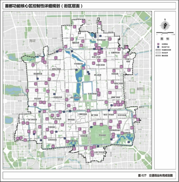 城市區位上,兩場站位于北京傳統四九城的二環內附近。二環路不僅是歷史上北京城墻與護城河的位置,也是首都核心功能區的主動脈。《控規》首章關于空間布局要求強化“兩軸、一城、一環”的城市空間結構。“一環”即沿二環路的文化景觀環線,建設展示歷史人文景觀和現代化首都風貌的公園環。本文選取的兩處場站都處在首都核心區城市“公園環”的節點之上。街區層面上,《控規》實施要點中也指出“提高二環路沿線重點區域發展質量”。