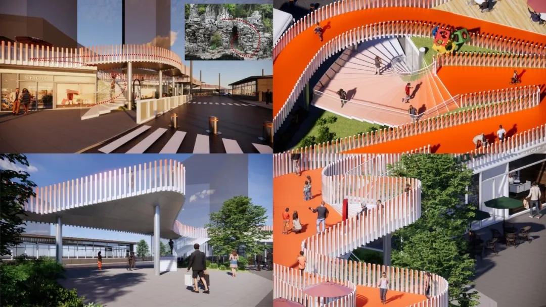 針對周邊高容積率、生活節奏快、年輕群體多的特點,場站提升更新中結合慢跑道、屋頂商業等復合功能,著力打造若干富有趣味的節點,吸引關注度: