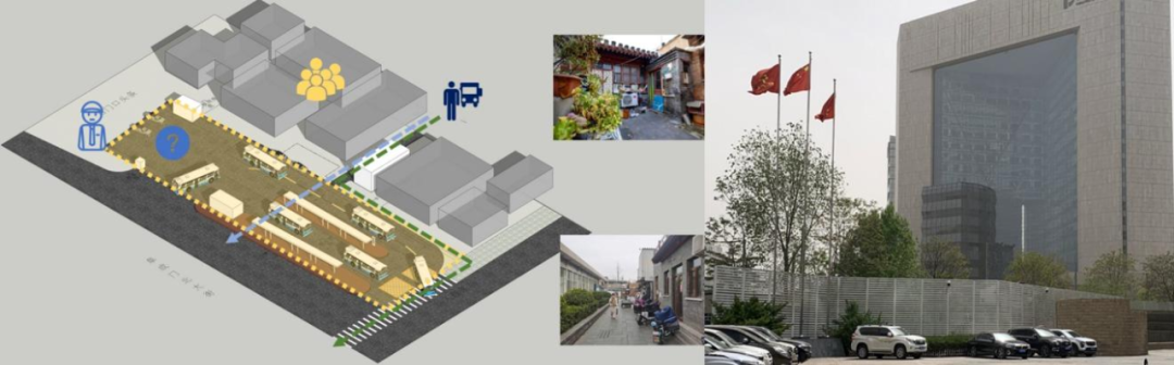 由于位于古都風貌保護區內,西城試點場站針對用地周邊歷史街區以平房、胡同為主的空間肌理與城市特點,基于尊重傳統格局及歷史風貌的原則,希望通過“針灸式”的輕改造活動,來平衡和消化公交場站和傳統歷史街區場所感上的距離。這樣既最大程度減少對歷史街區的擾動,同時也保留了原來公交場站地職能,將提質更新的效益最大化。