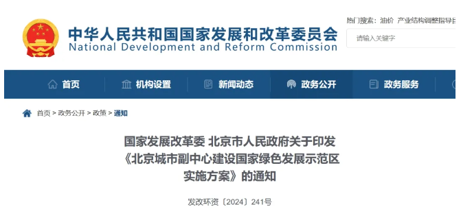 展首都綠色之翼 創(chuàng)全國示范之先 高質量建設國家綠色發(fā)展示范區(qū) ——《北京城市副中心建設國家綠色發(fā)展示范區(qū)實施方案》解讀 張英健 木其堅 近日,經國務院同意,國家發(fā)展改革委、北京市人民政府聯合印發(fā)《北京城市副中心建設國家綠色發(fā)展示范區(qū)實施方案》(發(fā)改環(huán)資〔2024〕241號,以下簡稱《實施方案》),明確了北京城市副中心綠色高質量發(fā)展、打造人與自然和諧共生樣板的工作路徑,為北京城市副中心有序承接中心城區(qū)非首都功能疏解、推進首都城市功能重組和布局優(yōu)化,建設和諧、宜居、美麗的綠色發(fā)展高地繪制了總體藍圖,對于推動北京“新兩翼”建設取得更大突破,促進京津冀協(xié)同發(fā)展具有重要而深遠的意義。 1、踐行習近平生態(tài)文明思想是北京城市副中心建設的根本遵循 規(guī)劃建設北京城市副中心,與雄安新區(qū)形成北京的“新兩翼”,是以習近平同志為核心的黨中央作出的重大決策部署,是千年大計、國家大事。早在2016年北京城市副中心研究部署規(guī)劃階段,習近平總書記就強調,北京城市副中心建設要牢固樹立并貫徹落實創(chuàng)新、協(xié)調、綠色、開放、共享的發(fā)展理念,構建藍綠交織、清新明亮、水城共融的生態(tài)城市布局,著力打造國際一流和諧宜居之都示范區(qū),建成綠色城市、森林城市、海綿城市、智慧城市。2021年8月,國務院印發(fā)《關于支持北京城市副中心高質量發(fā)展的意見》,明確提出在北京城市副中心建設國家綠色發(fā)展示范區(qū),堅持將綠色發(fā)展理念融入經濟社會發(fā)展全過程。近年來,京津冀3省市切實履行主體責任,中央有關部門和單位大力支持配合,疏解北京非首都功能初見成效,北京城市副中心高質量發(fā)展步伐加快,“軌道上的京津冀”加速形成,北京城市副中心美麗宜居水平大幅提升,科技創(chuàng)新和產業(yè)融合發(fā)展水平持續(xù)提升,人民群眾獲得感顯著增強。實踐證明,黨中央關于北京城市副中心的安排部署,特別是堅持將綠色發(fā)展作為城市發(fā)展底色的決策部署科學合理、順應民心,符合我國新時代高質量發(fā)展需要。 北京城市副中心肩負著有序承接中心城區(qū)非首都功能疏解、推進首都城市功能重組和布局優(yōu)化、探索人口經濟密集地區(qū)優(yōu)化開發(fā)模式的艱巨任務。與雄安平地建新城不同,北京城市副中心本身已有城市建設的基礎,如何在既有基礎上脫胎換骨、綠色升級,打造一個不一樣的和諧宜居之城,關鍵是必須牢牢把握住習近平生態(tài)文明思想這個最核心的思想武器。《實施方案》認真貫徹黨中央、國務院決策部署,時時處處踐行綠水青山就是金山銀山理念,牢固樹立節(jié)約集約循環(huán)利用的資源觀,以實現碳達峰碳中和目標為引領,將綠色發(fā)展理念融入北京城市副中心經濟社會發(fā)展各領域全過程,協(xié)同推進降碳、減污、擴綠、增長,擘畫了北京城市副中心的發(fā)展藍圖,描繪了青山常在、綠水長流、空氣常新的美麗畫卷,印發(fā)后必將成為北京城市副中心綠色高質量發(fā)展的重要指南。 2、做好北京城市副中心綠色發(fā)展六篇示范文章 北京城市副中心建設國家綠色發(fā)展示范區(qū),不是戴帽子、做盆景,是要真正解題破題,探索既有建成區(qū)綠色低碳升級的可行路徑,從而為首都乃至全國各個地區(qū)提供可推廣、可復制的經驗。《實施方案》明確,將聚焦建筑、交通、產業(yè)三大關鍵領域和能源、生態(tài)、文化三大重點支撐開展綠色示范,統(tǒng)籌產業(yè)結構調整、污染治理、生態(tài)保護、應對氣候變化,協(xié)同推進降碳、減污、擴綠、增長,推動北京城市副中心經濟社會各方面和全過程綠色低碳發(fā)展。綠色建筑示范方面,統(tǒng)籌考慮新建建筑建造、既有建筑改造和智能建造應用,推進實施工程建設全過程綠色建造,大力推行綠色建筑和超低能耗建筑,加大智能建造應用力度,推動建筑領域全過程節(jié)約資源和減少碳排放,實現建筑領域綠色化、品質化發(fā)展和數字化、智能化升級。綠色交通示范方面,建設高效綠色的軌道交通,完善生態(tài)友好的道路交通,推進綠色智能交通管理,推動區(qū)域綠色低碳交通一體化,構建承載輻射功能突出、便捷暢達、人本生態(tài)的現代綜合交通體系,為北京城市副中心與河北省三河市、大廠回族自治縣、香河縣一體化高質量發(fā)展提供重要支撐。綠色產業(yè)示范方面,推進數字化智能化綠色化融合發(fā)展,著力提升產業(yè)綠色化發(fā)展水平,強化綠色金融商務服務功能,推進文化旅游商務融合發(fā)展,加強綠色產業(yè)國際國內交流與合作,在落實碳達峰碳中和目標任務過程中鍛造新的產業(yè)競爭優(yōu)勢。綠色能源示范方面,完善能源消耗強度和總量調控,全面提升能源利用效率,大力發(fā)展可再生能源和余熱利用,積極拓展綠色電力應用,大力推廣應用先進能源技術,全面建立安全可靠、綠色低碳的能源體系。綠色生態(tài)示范方面,建設水城共融的生態(tài)城市,建成藍綠交織的森林空間,持續(xù)抓好空氣污染治理,加強噪聲污染綜合防治,加強韌性城市建設,加強跨區(qū)域生態(tài)環(huán)境共治,形成清新美麗宜居的綠色空間格局。綠色文化示范