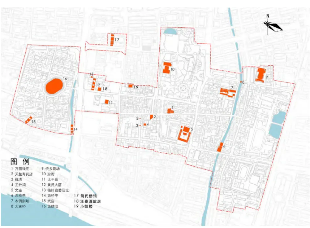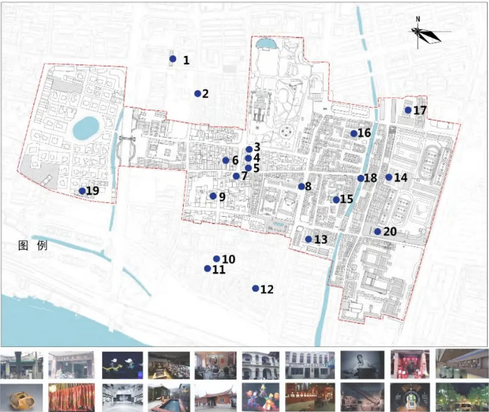 圖2 漳州古城名人舊居和知名場所分布示意圖