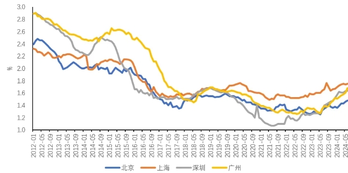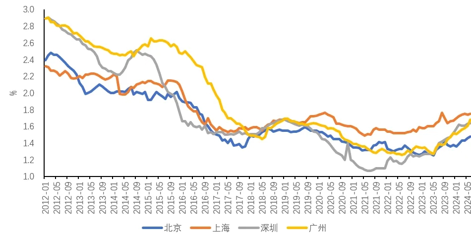 若要將全國去化周期降至18個月,預計需要資金超過5萬億元,此次中國人民銀行3000億元保障性住房再貸款預計帶動5000億元銀行存款,具有較強的信號作用。預計政府收儲將以小戶型存量新房為主,集中于高庫存且保障性住房缺口較大的城市,但目前政策存在三大堵點:第一,收儲要求地方政府的資金支持,但目前除了部分一二線城市具有加杠桿空間外,多數地方政府加杠桿能力有限;第二,部分城市成本收益不匹配導致項目推進有難度,保障性住房再貸款政策利率1.75%,考慮商業銀行運營成本和房屋裝修成本預計要求收購成本在2.75%以上,這就對配租型保障性住房的租金回報率有一定要求,而2024年6月上海、深圳、廣州、北京的二手房租金回報率分別僅為1.75%、1.64%、1.68%、1.48%,租金無法覆蓋利息支出及運營維護成本,除非收購價格在6折以下;第三,保障性住房需求與商品房庫存之間存在錯位,2023年人口凈流入城市主要是廣州、東莞、成都、蘇州、佛山、武漢、杭州等一二線城市,這就意味著保障性住房缺口大的也是這些城市,而去庫存緊迫性高的是三四線城市。因此,本輪政府收儲去庫存的效果可能弱于上一輪棚改貨幣化政策。