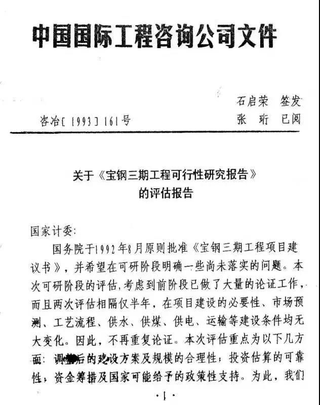 編者按:《共和國(guó)的鋼鐵歲月》一書(shū)通過(guò)對(duì)中國(guó)國(guó)際工程咨詢(xún)公司原黨組書(shū)記、總經(jīng)理石啟榮同志的訪談,揭示了我國(guó)鋼鐵工業(yè)發(fā)展過(guò)程中一些鮮為人知的故事,再現(xiàn)了鋼鐵工業(yè)艱苦卓絕、波瀾壯闊的發(fā)展歷程,為鋼鐵工業(yè)的歷史傳承和轉(zhuǎn)型升級(jí)注入了新的正能量。本書(shū)20余萬(wàn)字,由在石啟榮身邊工作的同志們歷經(jīng)十多年收集整理而成,圖文并茂,內(nèi)容翔實(shí),對(duì)了解共和國(guó)火紅的鋼鐵年代具有很高的史料價(jià)值,對(duì)鋼鐵工業(yè)未來(lái)發(fā)展也具有現(xiàn)實(shí)意義。 本文全文摘錄自該書(shū)第一部分。 寶鋼集團(tuán)有限公司(以下簡(jiǎn)稱(chēng)“寶鋼”)是中國(guó)改革開(kāi)放的產(chǎn)物,1978年12月23日,黨的十一屆三中全會(huì)閉幕的第二天,在上海北翼長(zhǎng)江之畔的寶山區(qū)打下第一根樁。經(jīng)過(guò)39年的發(fā)展,寶鋼已成為中國(guó)現(xiàn)代化程度最高、最具競(jìng)爭(zhēng)力的大型鋼鐵聯(lián)合企業(yè)。 2016年,寶鋼連續(xù)十三年進(jìn)入美國(guó)《財(cái)富》雜志評(píng)選的世界500強(qiáng)榜單,列第275位,在世界鋼鐵企業(yè)排序中列第5位。寶鋼的建設(shè),極大地促進(jìn)了中國(guó)鋼鐵工業(yè)的技術(shù)進(jìn)步,實(shí)現(xiàn)了中國(guó)鋼鐵工業(yè)的跨越式發(fā)展,從此,我國(guó)鋼鐵業(yè)開(kāi)始躋身世界先進(jìn)行列。 寶鋼工程是國(guó)家的一個(gè)重大建設(shè)項(xiàng)目,當(dāng)初建設(shè)這樣的大鋼廠,必須把全社會(huì)的力量組織起來(lái),舉全國(guó)之力來(lái)實(shí)施。 寶鋼打下第一根樁 1978年12月-1985年9月,第一座高爐及相應(yīng)的煉鋼、公輔設(shè)施投入生產(chǎn),人們習(xí)慣稱(chēng)之為寶鋼“一期”工程。 1985年10月-1992年7月,第二座高爐及煉鋼、軋鋼工程相繼投入生產(chǎn),人們稱(chēng)之為寶鋼“二期”工程。需要說(shuō)明的是,寶鋼與日本簽訂的合同中并無(wú)一期、二期之分。 20世紀(jì)90年代,第三座高爐、1580mm熱連軋機(jī)、1550mm/1420mm冷連軋機(jī)、相應(yīng)的公輔設(shè)施投入生產(chǎn),人們稱(chēng)之為寶鋼 “三期”工程。 進(jìn)入21世紀(jì),寶鋼又建設(shè)了1850mm熱連軋及1800mm冷連軋汽車(chē)板生產(chǎn)線、4號(hào)高爐、5m寬厚板軋機(jī)以及廣東湛江鋼鐵基地等。 在寶鋼39年發(fā)展的風(fēng)風(fēng)雨雨中,石啟榮同志矢志不渝地支持寶鋼,他一直謀劃和指導(dǎo)寶鋼的現(xiàn)代化建設(shè),為寶鋼的發(fā)展壯大作出了貢獻(xiàn)。 1980年5月,石啟榮同志擔(dān)任國(guó)家建委重工業(yè)局副局長(zhǎng)。 1982年,國(guó)家建委撤銷(xiāo),一分為三,其國(guó)土資源局并入國(guó)家計(jì)委,建設(shè)局、標(biāo)準(zhǔn)定額局、設(shè)計(jì)局、標(biāo)準(zhǔn)研究所并入建設(shè)部,能源局、交通局、重工業(yè)局和綜合局成立基建辦公室并入國(guó)家經(jīng)濟(jì)委員會(huì),石啟榮任辦公室副主任。1982年5月,國(guó)務(wù)院代表韓光主持“寶鋼建設(shè)現(xiàn)場(chǎng)辦公會(huì)議”,石啟榮同志協(xié)助國(guó)務(wù)院代表,全面負(fù)責(zé)寶鋼對(duì)外、對(duì)內(nèi)各項(xiàng)事務(wù)。寶鋼一期共召開(kāi)8次國(guó)務(wù)院代表會(huì)議、二期共召開(kāi)10次國(guó)務(wù)院代表會(huì)議。 1983年,基建辦公室撤銷(xiāo),石啟榮任國(guó)家經(jīng)委委員。 1984年年初,原基建辦公室的全部建制并入國(guó)家計(jì)委,石啟榮任國(guó)家計(jì)委委員。當(dāng)時(shí)為推動(dòng)寶鋼建設(shè),國(guó)家經(jīng)委、計(jì)委成立了“計(jì)委、經(jīng)委寶鋼建設(shè)聯(lián)合辦公室”,石啟榮同志任辦公室主任,兩委重工業(yè)局的領(lǐng)導(dǎo)任副主任,解決寶鋼工程建設(shè)中涉及計(jì)委、經(jīng)委相關(guān)事宜。 1985年10月后,石啟榮同志任國(guó)家計(jì)委委員、專(zhuān)職委員、黨組成員,同時(shí)兼任中國(guó)國(guó)際工程咨詢(xún)公司黨組書(shū)記、總經(jīng)理(副部長(zhǎng)級(jí))。 1994年1月以后,石啟榮同志擔(dān)任國(guó)家發(fā)展改革委顧問(wèn)。 1996年1月,石啟榮同志卸任中國(guó)國(guó)際工程咨詢(xún)公司總經(jīng)理后擔(dān)任專(zhuān)家委員會(huì)主任,繼續(xù)為寶鋼的后續(xù)建設(shè)發(fā)展出謀劃策。 寶鋼每一個(gè)重大建設(shè)項(xiàng)目,石啟榮都親自帶隊(duì)實(shí)地考察、策劃、評(píng)估,遇到問(wèn)題不遺余力地協(xié)調(diào)解決,時(shí)刻關(guān)心著寶鋼的健康成長(zhǎng)。 本篇以時(shí)間為脈絡(luò),摘取石啟榮同志在寶鋼各期建設(shè)過(guò)程中做出的幾件有代表性事件,以點(diǎn)映面,以饗讀者。 01 改革開(kāi)放,寶鋼揚(yáng)帆正當(dāng)時(shí) 1976年年底,十年“文革”浩劫剛剛結(jié)束,百?gòu)U待興,國(guó)家經(jīng)濟(jì)十分困難,各行各業(yè)亟須重整旗鼓,上下都憋足了勁,要把失去的十年補(bǔ)回來(lái),我國(guó)由此進(jìn)入新的歷史發(fā)展時(shí)期,社會(huì)主義現(xiàn)代化建設(shè)被重新提到最重要的議程上。 當(dāng)時(shí)全國(guó)鋼產(chǎn)量?jī)H有2100萬(wàn)t,生產(chǎn)技術(shù)落后,無(wú)法滿(mǎn)足社會(huì)主義現(xiàn)代化建設(shè)的需要,技