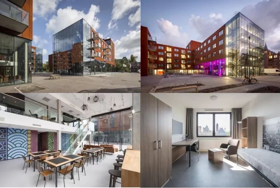 該宿舍位于荷蘭代爾夫特,2017年投入使用。該建筑包含332個公寓單元,可容納來自全世界的350位學生同時居住。除解決學生居住問題,該項目通過建立學校與城市的良好連接性,加強了學生與周圍社區的緊密聯系。