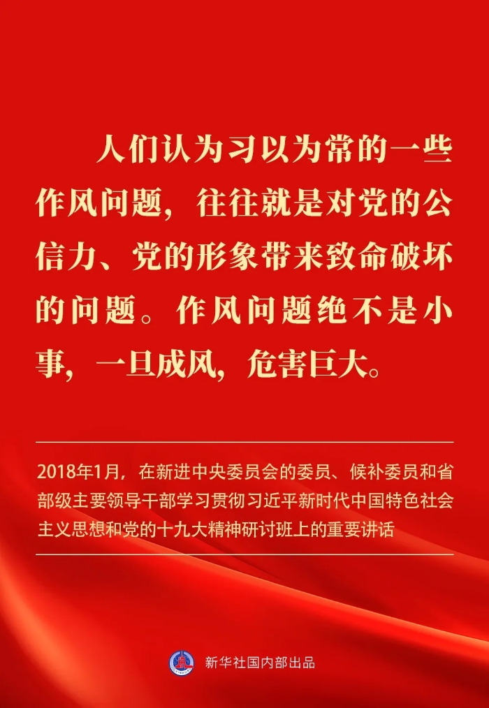 中央黨的建設(shè)工作領(lǐng)導(dǎo)小組近日召開會(huì)議指出,黨中央決定,自2025年全國兩會(huì)后至7月在全黨開展深入貫徹中央八項(xiàng)規(guī)定精神學(xué)習(xí)教育。 黨的十八大以來,以習(xí)近平同志為核心的黨中央從制定和落實(shí)中央八項(xiàng)規(guī)定開局破題,堅(jiān)持自上而下、以上率下,解決了新形勢(shì)下作風(fēng)建設(shè)抓什么、怎么抓的問題。 在全黨扎實(shí)開展深入貫徹中央八項(xiàng)規(guī)定精神學(xué)習(xí)教育之際,讓我們一起重溫金句,學(xué)習(xí)習(xí)近平總書記圍繞加強(qiáng)黨的作風(fēng)建設(shè)發(fā)表的一系列重要論述。 | |||||