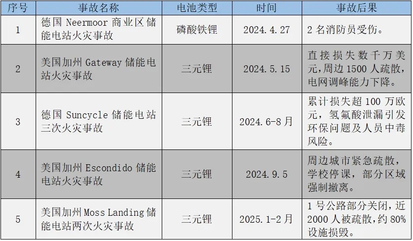 我國電化學儲能電站 安全風險分析及管控建議 嚴超 黃文 摘要:電化學儲能電站是我國建設新型電力系統(tǒng)、實現(xiàn)碳達峰碳中和的重要支撐。然而,其存在火災甚至爆炸的風險。全球范圍內電化學儲能電站火災事故頻發(fā),這警示我國需科學管控電化學儲能電站的安全風險。本文介紹電化學儲能電站的安全難題,分析我國電化學儲能電站存在的安全風險,進一步探討其安全風險管控過程中面臨的困難與挑戰(zhàn),提出科學管控安全風險的對策建議,旨在更好地保障我國電化學儲能電站的安全,推動新型電力系統(tǒng)建設以及碳達峰碳中和目標的實現(xiàn)。 電化學儲能包括鋰離子、鉛酸(碳)、液流、鈉硫等不同類型的電池技術,當前主要以磷酸鐵鋰和三元鋰電池為主。電化學儲能電站由數(shù)萬至數(shù)十萬個電池組成,具有布局靈活、響應速度快、調節(jié)精度高等優(yōu)勢,在我國建設新型電力系統(tǒng)、實現(xiàn)碳達峰碳中和目標的進程中發(fā)揮著重要支撐作用。根據(jù)國家能源局發(fā)布數(shù)據(jù),截至2024年底,我國新型儲能裝機累計達到7376萬kW,較2023年底增長超過130%,其中95%以上為鋰離子電池儲能,我國電化學儲能已進入規(guī)模化發(fā)展階段。 磷酸鐵鋰和三元鋰電池本身存在一定的熱失控概率,這種熱失控可能導致電化學儲能電站發(fā)生火災甚至爆炸,但磷酸鐵鋰相較三元鋰的安全性更好。全球范圍內,電化學儲能電站火災事故屢見不鮮,不僅對公共安全構成嚴重威脅,還可能影響碳達峰碳中和目標的實現(xiàn)進程。這些事故警示我國在新型儲能規(guī)模化發(fā)展過程中,必須科學謀劃并有效管控電化學儲能電站的安全風險,以確保新型電力系統(tǒng)建設和碳達峰碳中和目標的安全有序推進。 本文從事故概率和事故影響兩個方面介紹電化學儲能電站的安全難題,在此基礎上,結合我國電化學儲能電站發(fā)展實際情況,分析其面臨的“基數(shù)增加”和“老舊隱患”風險,探討我國電化學儲能電站安全風險管控在設計規(guī)范、監(jiān)測預警和消防策略方面面臨的挑戰(zhàn),從加快本征安全研究、加強規(guī)范制定、升級監(jiān)測預警和完善消防策略等方面提出對策建議。 一、電化學儲能電站安全難題介紹 (一)電化學儲能電站事故概率 電化學儲能電池在過充、過放、環(huán)流、內部短路、電氣故障、機械碰撞等多種故障情況下,電芯溫度容易升高,進而引發(fā)熱失控,最終導致火災。電芯燃燒時會釋放出可燃和有毒氣體,可能導致爆炸[1]。大型儲能電站(100兆瓦以上)通常由數(shù)十萬至百萬個電芯組成,這使得電芯出現(xiàn)故障的概率大幅增加。目前,全球范圍內已發(fā)生多起電化學儲能電站火災事故,主要集中在韓國和美國,中國、澳大利亞、德國、法國等地也有此類事故發(fā)生。目前單體電池的火災概率約在10-3量級,根據(jù)孫金華院士2022年的統(tǒng)計,全球每座儲能電站每年發(fā)生火災的概率約在2×10-3~3×10-3。截至2024年底,我國已投運的電化學儲能電站達1473座[2],按照這個數(shù)據(jù)估算,每年約有2~5座電化學儲能電站可能發(fā)生火災事故。表1統(tǒng)計了我國近2年公開記錄的主要電化學儲能電站事故,考慮到部分事故可能未被公開,事故統(tǒng)計數(shù)據(jù)可能較真實情況有所低估。 表1 近2年我國主要公開電化學儲能電站火災事故 (二)電化學儲能電站事故影響 在全球范圍內,早期曾發(fā)生多起造成人員傷亡的嚴重電化學儲能電站燃爆事故(見表2),這些事故引發(fā)了人們對公共安全的高度重視。其中,2021年我國北京集美大紅門儲能電站發(fā)生爆炸事故,造成2名消防員死亡;2024年韓國京畿道電池廠火災引發(fā)爆炸事故,導致23人死亡。在電化學儲能火災處置不當?shù)那闆r下,極易發(fā)生燃爆,從而引發(fā)大規(guī)模事故。2024年以來,全球范圍內電化學儲能電站火災事故持續(xù)不斷(見表3)。例如,2024年5月美國加利福尼亞州Gateway儲能電站(250兆瓦/250兆瓦時)發(fā)生火災事故,電站多次復燃,火災持續(xù)約11天,釋放出的大量有毒有害氣體造成嚴重空氣污染,迫使周邊地區(qū)1500多名居民緊急疏散撤離,滅火時產(chǎn)生的大量水漬會造成環(huán)境污染。電站設備及建筑物損毀造成數(shù)千萬美元經(jīng)濟損失,儲能設施停運使電網(wǎng)調峰能力下降,引發(fā)當?shù)厣鐓^(qū)對電化學儲能電站部署的強烈反對,火災發(fā)生后圣迭戈縣明確禁止在住宅區(qū)部署儲能設施。 表2 全球范圍造成人員傷亡的主要電化學儲能電站事故 表3 2024年以來全球主要電化學儲能電站火災事故 二、我國電化學儲能電站安全風險分析 根據(jù)工程風險評估理論[3],電化學儲能電站的安全風險是電站數(shù)量、事故概率和事故影響三者的乘積。其中,事故概率受電池本體質量、集成設計、氣象條件等多種因素制約,事故影響涵蓋人身安全、環(huán)境污染、財物損失等多方面。 (一)“基數(shù)增加”風險 截至2024年,全國投運新型儲能總裝機達到7376萬千瓦/1.68億千瓦時,約為“十三五”末期的20倍,且95%以上為電化學儲能。然而,其僅占全國電源總裝機的2.20%,占新能源總裝機的5.23%,與新型電力系統(tǒng)調節(jié)能力建設的需求相比,差距較大,增長潛力巨大[4]。據(jù)中關村儲能產(chǎn)業(yè)聯(lián)盟估