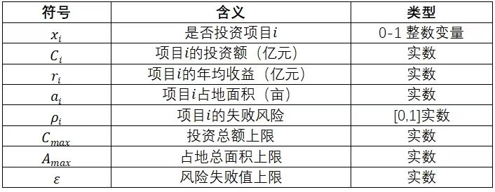 在本文構建的模型中,每個項目是否選擇由決策變量表示,當失敗風險ε值固定后,模型求解就可以表示為典型的0-1選擇問題。